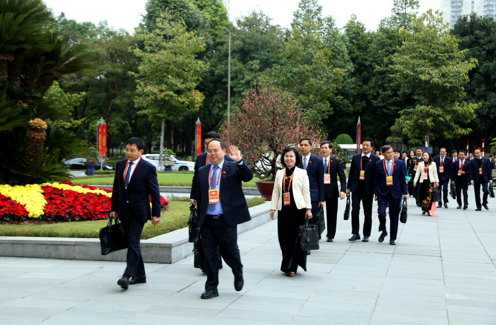 Đoàn đại biểu Đảng bộ tỉnh Quảng Ninh đến dự ngày làm việc thứ tư của Đại hội.